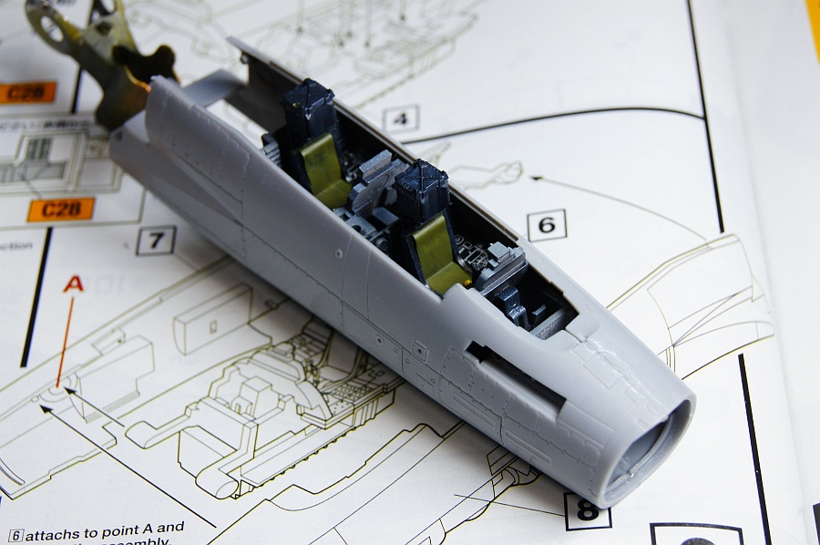 コックピットを塗ってから左右を接着。この辺はヒコーキ模型製作時のお約束でしょうか。