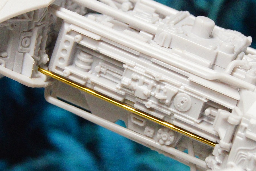 そうそう、下の部分はパーツが折れてしまったんで、0.6mm真鍮線に置き換えた。真っ直ぐなパイプくらいは最初から真鍮線にしといたらよかったんだけどね。