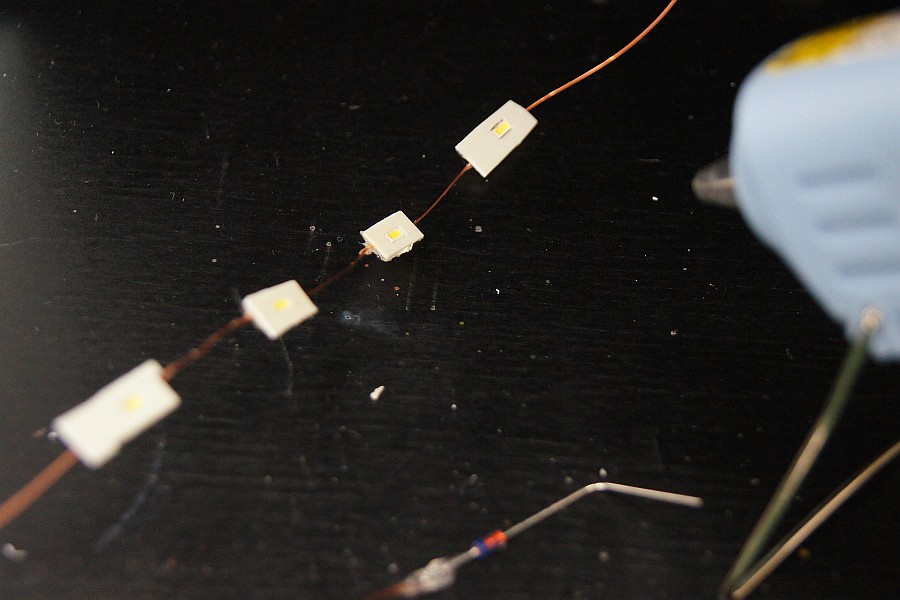 蛍光灯は、白色LEDをこんな感じにプラ版で固定しておいて、