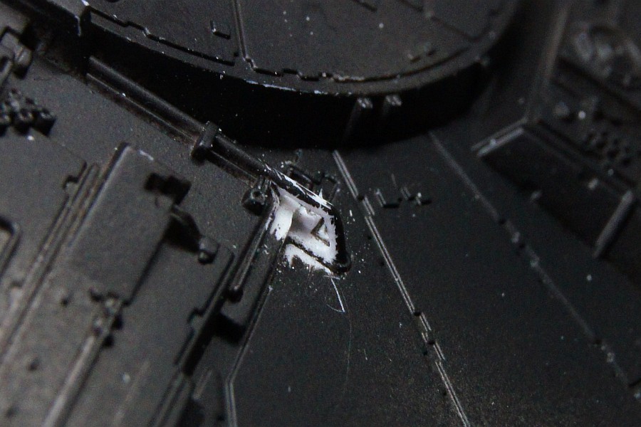左右の半円の部分はディテールがよくわからないので半分だけ彫り込んで終わりにした。片方折れたし。