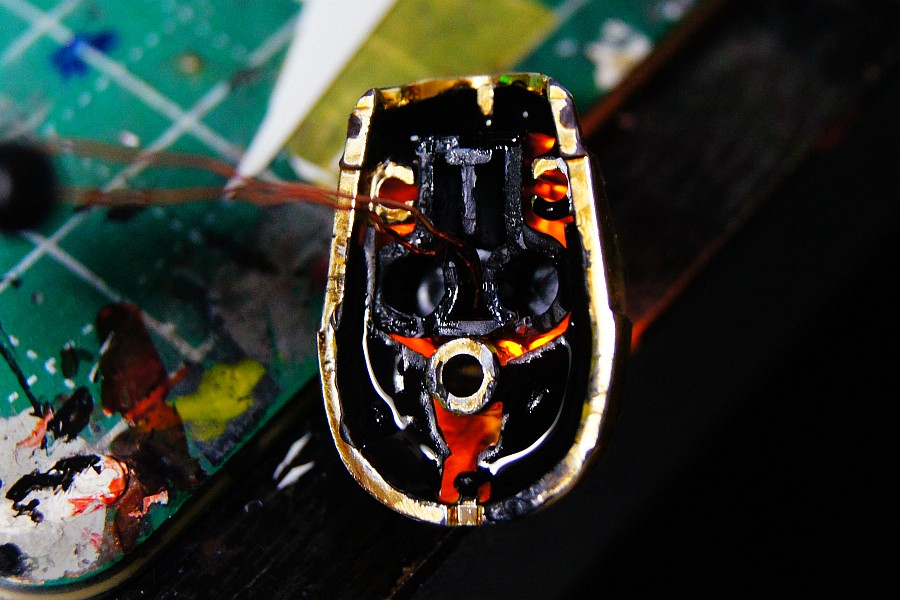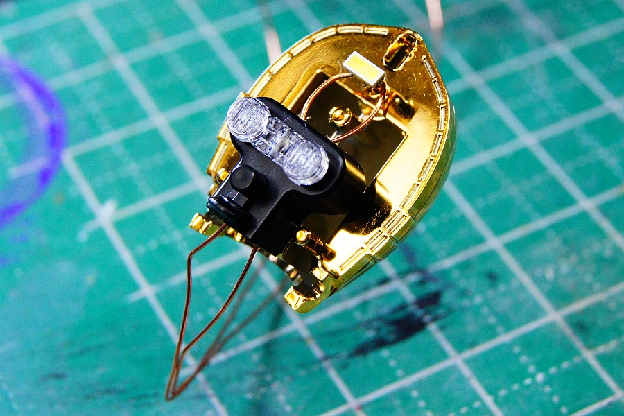 実際、目はそれほど明るく光らせなくてもよい気もするけど、派手に光るほうが電蝕した感がでるので、やり直すことに。