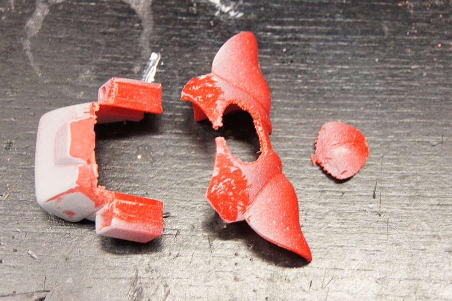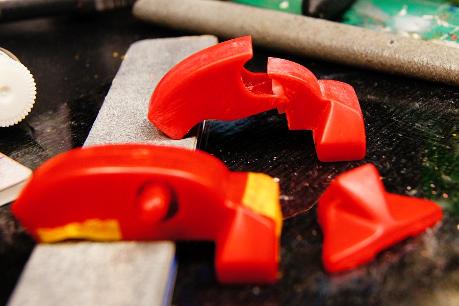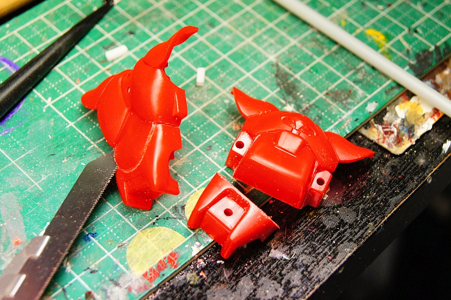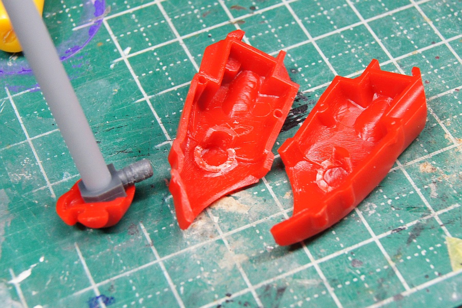 基本的には、足を長くすればなんとかなりそうな気がするんで、まずは足首パーツを切断して甲を上げてみる。