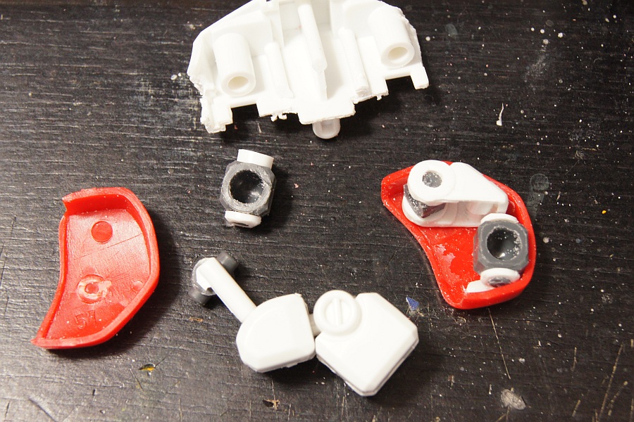 上腕にはボールジョイントを、肩にはポリパーツを薄く削ったものを仕込んだ。