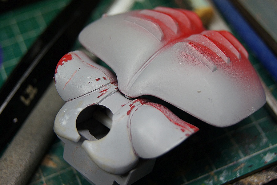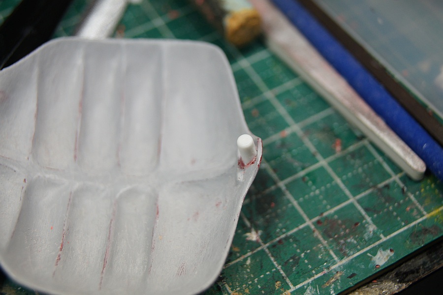 いろいろとパテ盛り中のパーツ。腰は気持ち幅詰めした。
