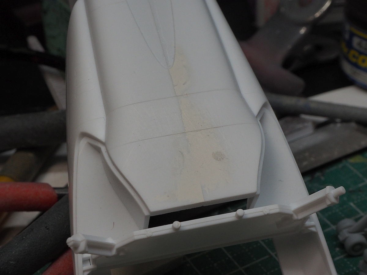 窓は先にクリアーレッドを吹いてマスキングしておいた。あんましうまくいかなかった。スジボリは掘り直しておいたほうがいいかも。