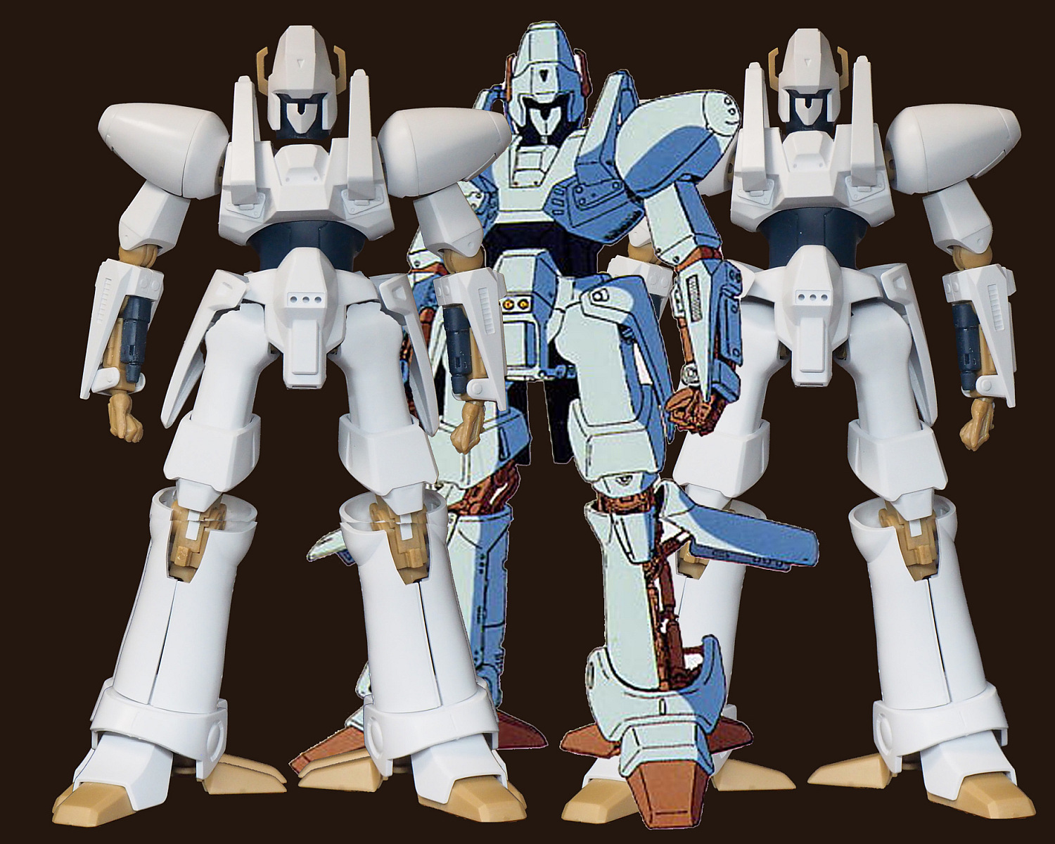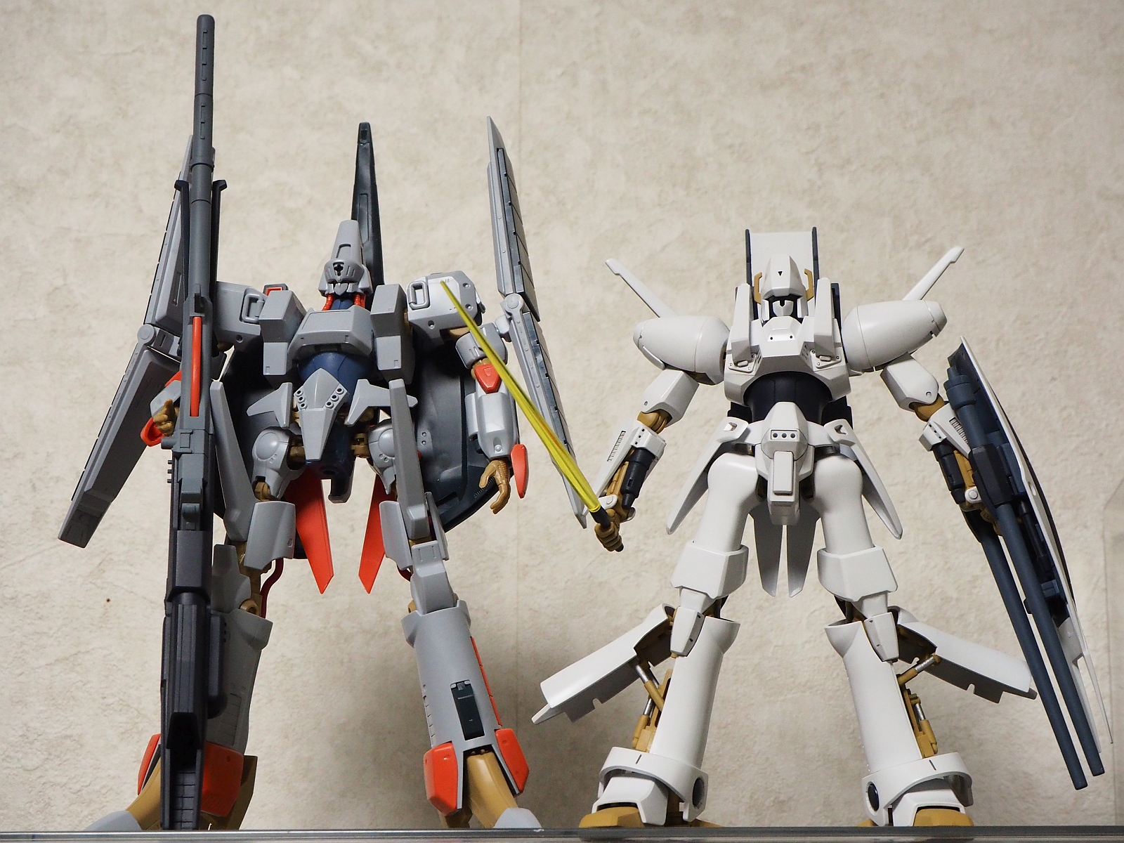 おまけ。素組みMk-IIとのツーショット。Mk-IIもいい出来。太もものサイズと位置以外は。